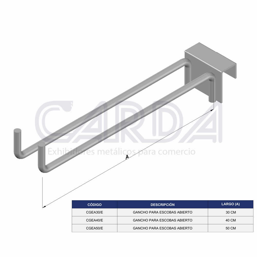 Gancho para escobas superior especial para solera estructura en alambre acabado epoxico