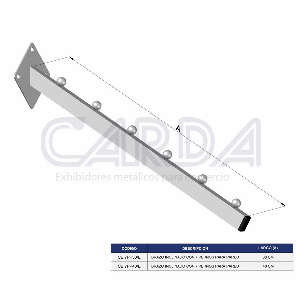 Brazo inclinado con 7 pernos especial para pared acabado epoxico
